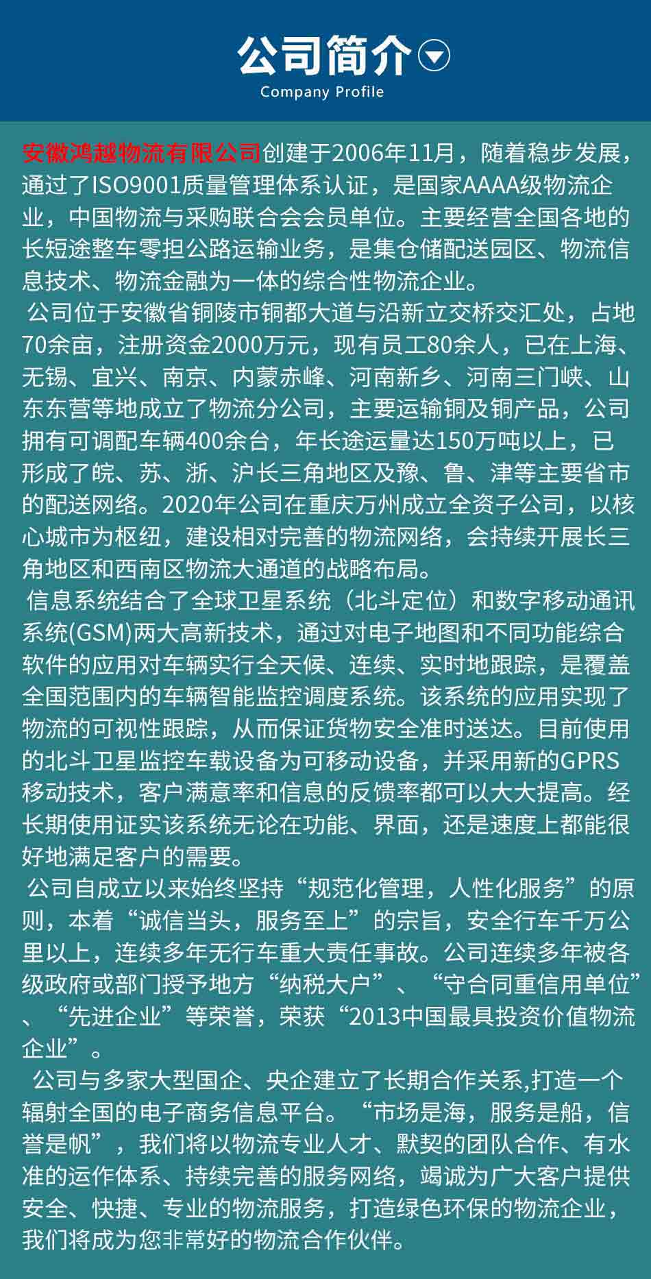 主要经营全国各地的长短途整车零担公路运输业务,是集仓储配送园区、物流信息技术、物流金融为一体的综合性物流企业